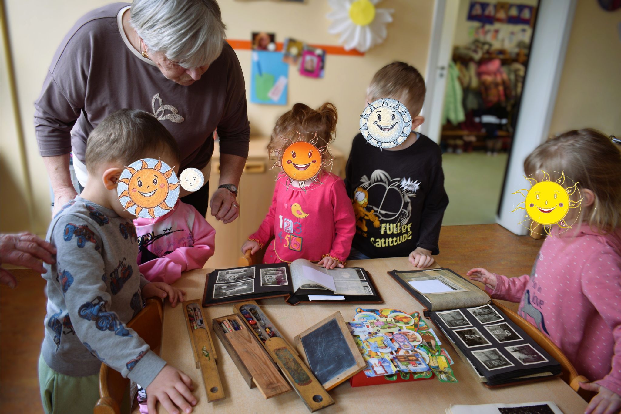 The little ones created colourful drawings that captured their own ideas of home and belonging – from favourite places in the village to family moments and the gentle landscape of the Altmark. In return, the seniors shared personal memories of life in Schönberg across the decades: stories of childhood games, harvest times, and the quiet strength of rural life.
